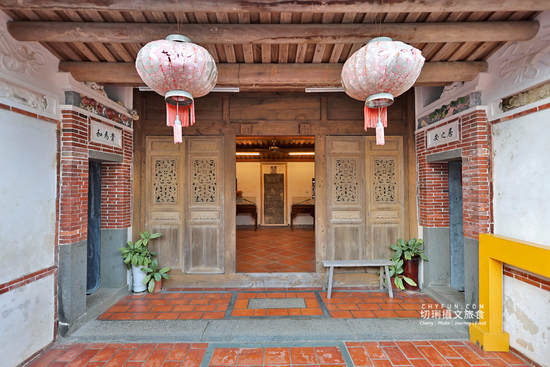 該房舍是一落四櫸頭閩南式建築,屋脊以官宅形式燕尾脊起造,兩側廂房為圓形馬背式作法,走入廳堂往外看,可見大門部分還能以新舊門共存擺設,在這裡可看到古人建築的巧思與智慧。